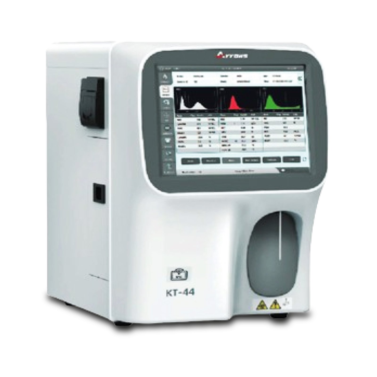 The Arrows KT-44 Hematology Analyzer is a 3-part differential, fully automated hematology analyzer designed for clinical laboratories to perform complete blood counts (CBC) efficiently and accurately. This analyzer is known for its user-friendly interface, reliable performance, and compact design, making it suitable for small to medium-sized laboratories.